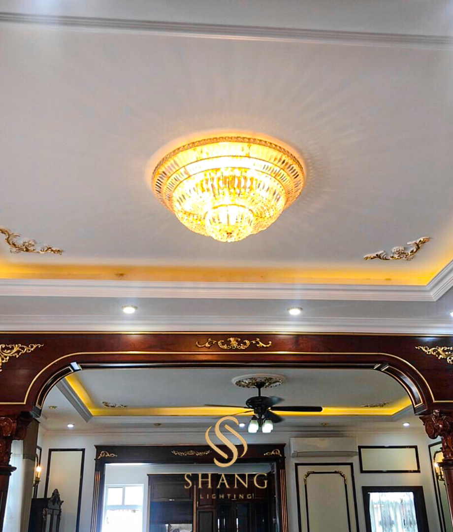 Những mẫu đèn chùm đồng và đèn ốp trần pha lê cao cấp do Shang Lighting cung cấp không chỉ là nguồn sáng, mà còn là điểm nhấn nghệ thuật tôn vinh vẻ đẹp sang trọng và quyền quý của ngôi nhà. Ánh sáng vàng ấm áp lan tỏa qua từng lát cắt pha lê, phản chiếu lên trần và tường, tạo nên bức tranh ánh sáng tinh tế và đầy cảm xúc.