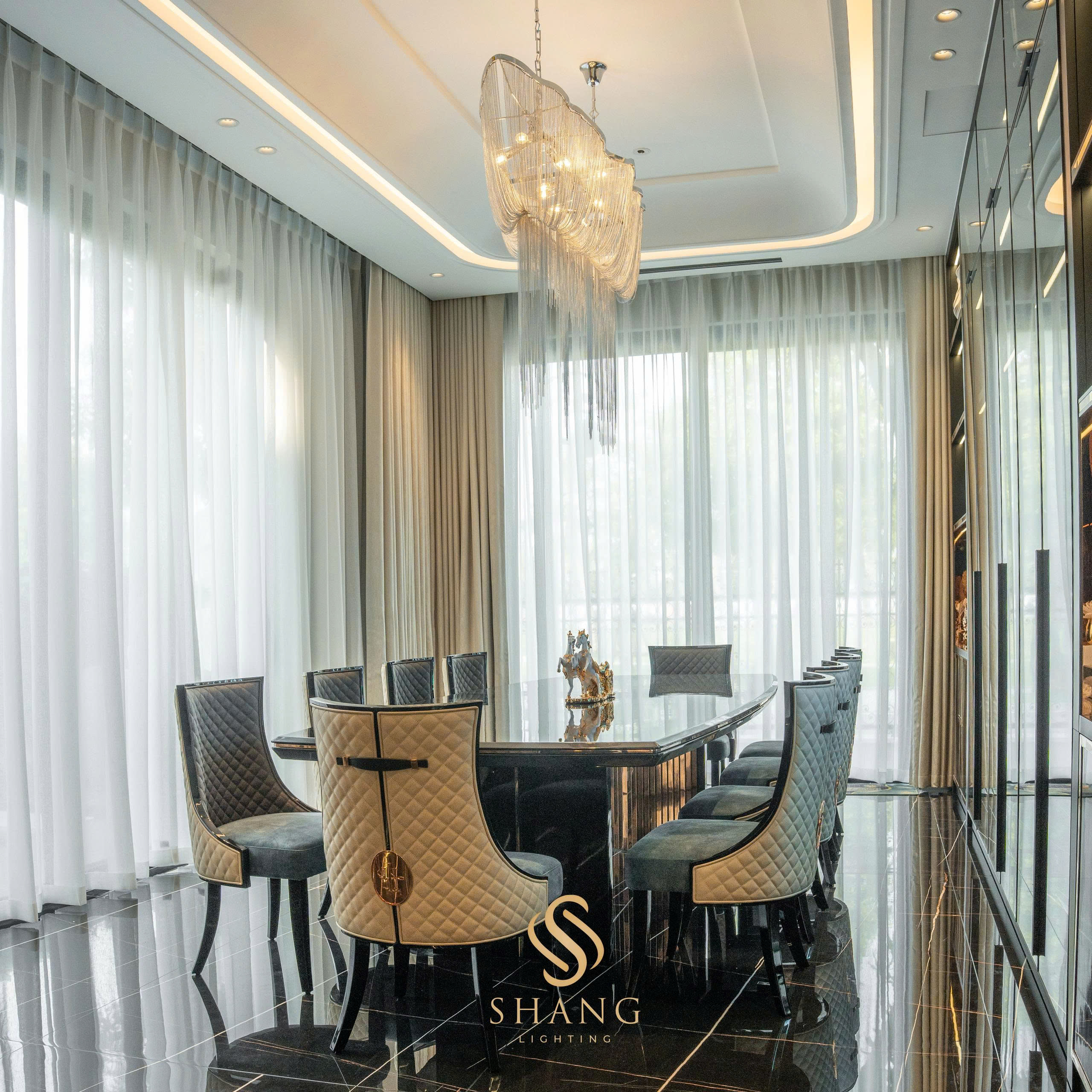 Shang Lighting đã thổi hồn vào không gian ấy bằng một giải pháp chiếu sáng chuyên nghiệp, được kiến tạo dành riêng từng không gian. Từ kiệt tác thông tầng độc bản uốn lượn như dải lụa ánh sáng, các mẫu đèn thả, đèn chùm thiết kế với kiểu sáng độc đáo nhưng không kém phần sang trọng, đến chiếc đèn bàn tỏa sáng tinh tế… tất cả tạo nên một bản hòa ca ánh sáng sang trọng, mềm mại và đầy cảm xúc.