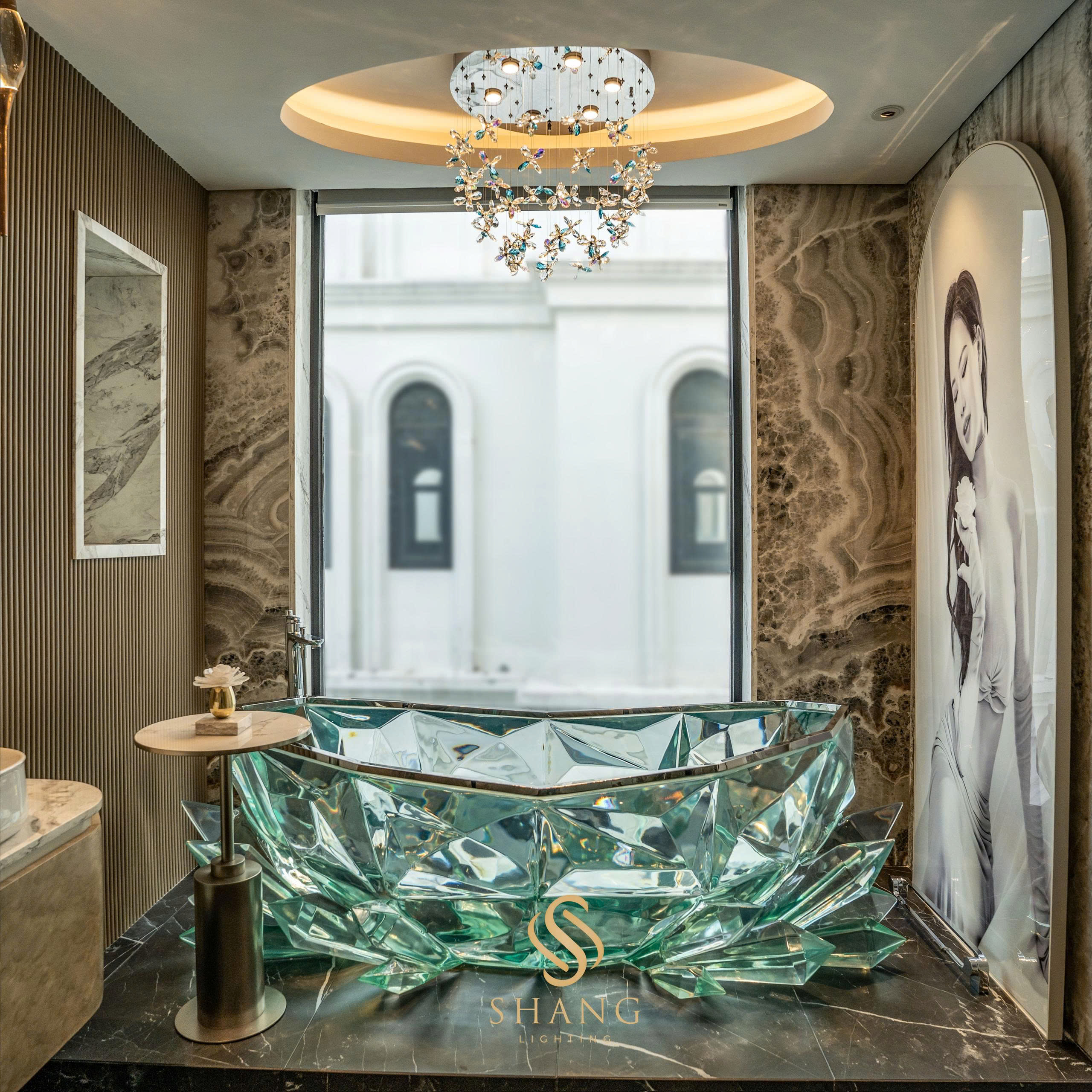 Mẫu đèn thiết kế hình hoa tinh tế giúp tôn lên bồn tắm đẹp mỹ miều