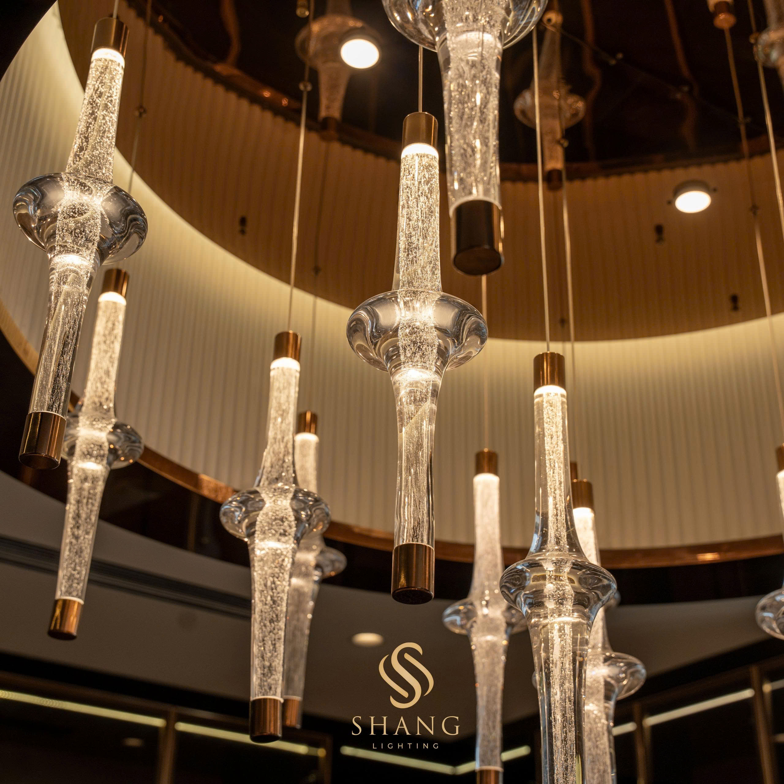 Shang Lighting đã thổi hồn vào không gian ấy bằng một giải pháp chiếu sáng chuyên nghiệp, được kiến tạo dành riêng từng không gian. Từ kiệt tác thông tầng độc bản uốn lượn như dải lụa ánh sáng, các mẫu đèn thả, đèn chùm thiết kế với kiểu sáng độc đáo nhưng không kém phần sang trọng, đến chiếc đèn bàn tỏa sáng tinh tế… tất cả tạo nên một bản hòa ca ánh sáng sang trọng, mềm mại và đầy cảm xúc.